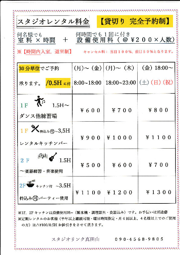 お問合せは、スタジオリンク真田山 090-4568-9805 まで